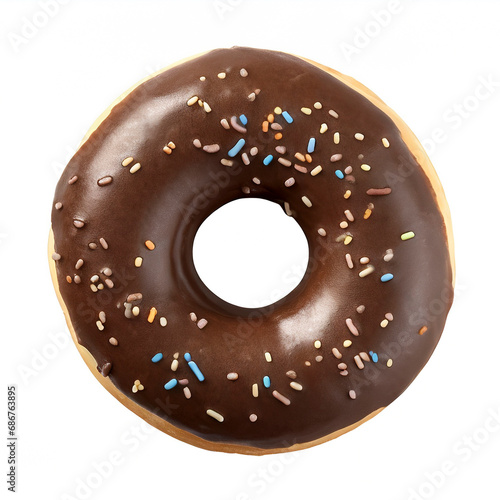 Chocolate donut with sprinkles isolated on a white background.
