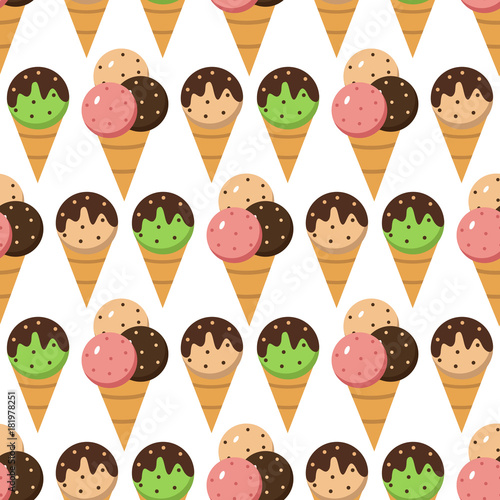 Chocolate vanilla and strawberry seamless pattern dessert sweet food Ice cream in cone vector illustration