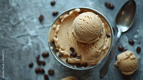 Chocolate, vanilla, caramel or cinnamon iced coffee in tall glass.