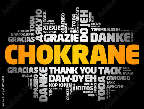Chokrane (Thank You in Arabic - Middle East, North Africa) word cloud background in different languages