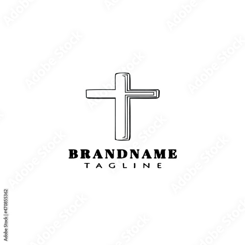 christian cross cartoon logo icon design template black vector illustration