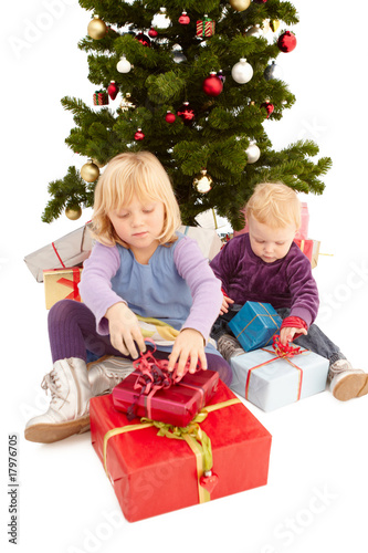 Christmas - Cute young girls opening their presents