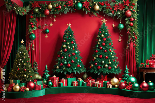 Christmas backdrop in festive ornaments and twinkling fairy lights