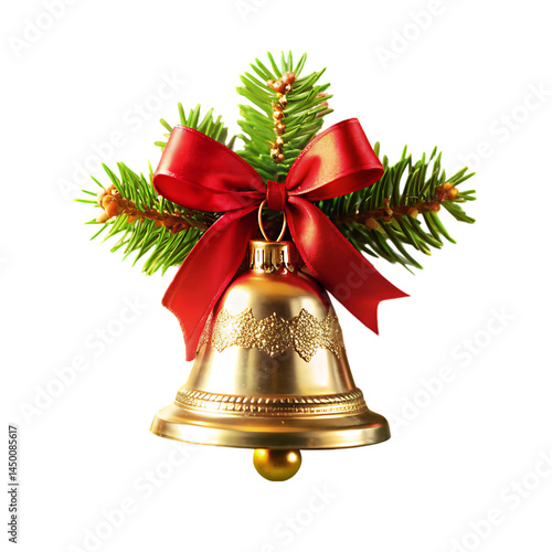 Christmas Bell with Bow and Holly: Festive Holiday Decoration Image