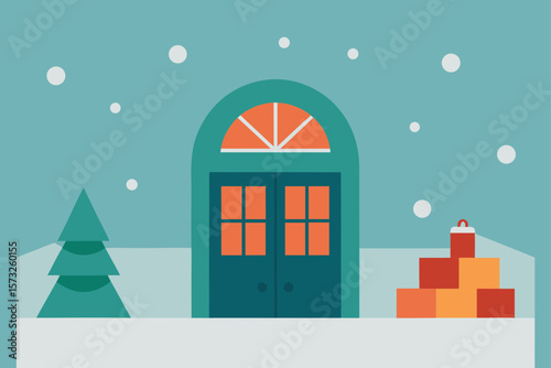 christmas card with house and snow