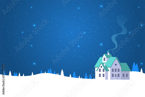 Christmas card with house in flat style