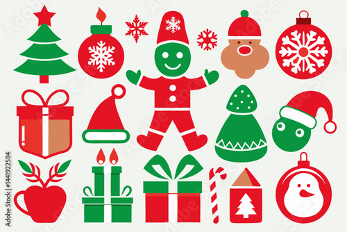 Christmas color icon set silhouette