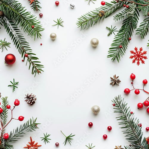 christmas decorations on a white background with copy space, in the style of boldly textured surfaces, nature