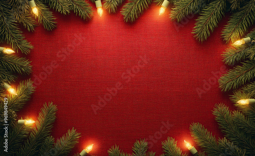 Christmas decorations red fabric textured background with empty space. Christmas concept