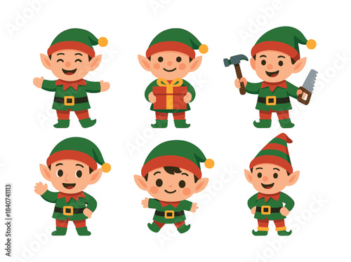 Christmas elves characters, flat vector illustration with holiday, festive design