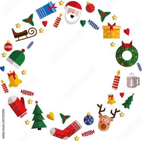 Christmas flat icons in a circle. Space for your text. Flat design template. Hand drawn vector illustration.