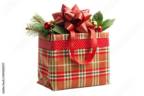 Christmas gift bag on transparent background