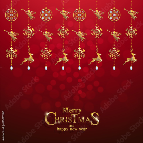 Christmas Greeting and New Years card templates with gold patterned and crystals on background color.