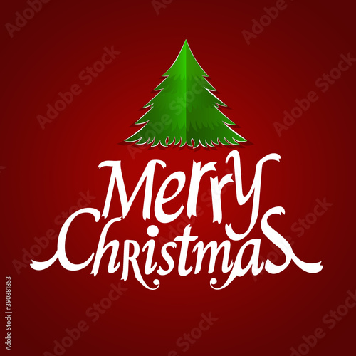 Christmas Greeting Card. Merry Christmas lettering with Christmas tree, vector illustration.