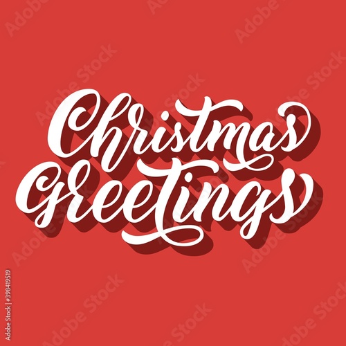 Christmas greetings brush hand lettering, with 3d shadow on retro red background. Vector type illustration. Can be used for holidays festive design.