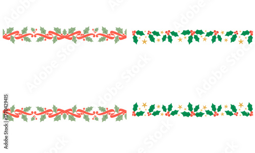 Christmas Holly Borders Clipart | Red Ribbon and Golden Star Garlands