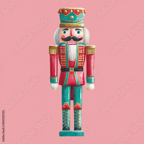Christmas nutcracker toy soldier illustration on pink background