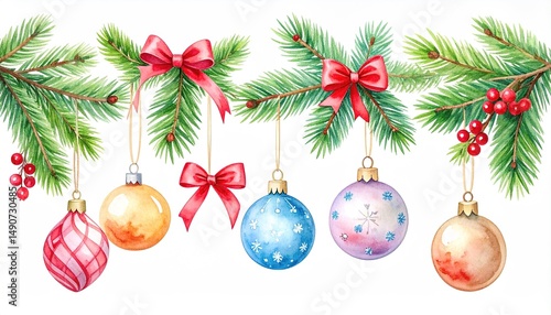 Christmas Ornaments Watercolor Branches.