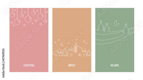 Christmas outline design, set of xmas doodle templates