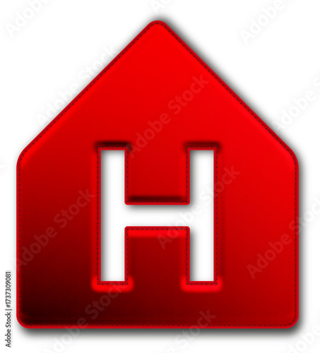 Christmas Red Hotel Icon glossy 3D festive holiday winter decoration shiny accommodation building symbol for celebration poster sticker background