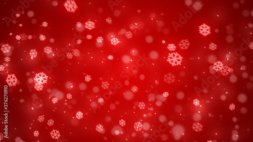 Christmas red snowflake with night star light and snow fall red background.