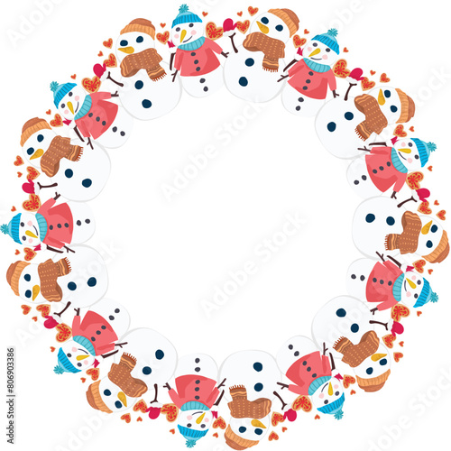 Christmas snowman wreath on transparent background.