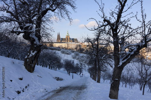 Christmas snowy Prague gothic Castle, Czech republic