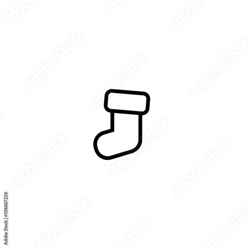Christmas stocking line icon. Holiday collection button. Patch pictogram isolated on white background.