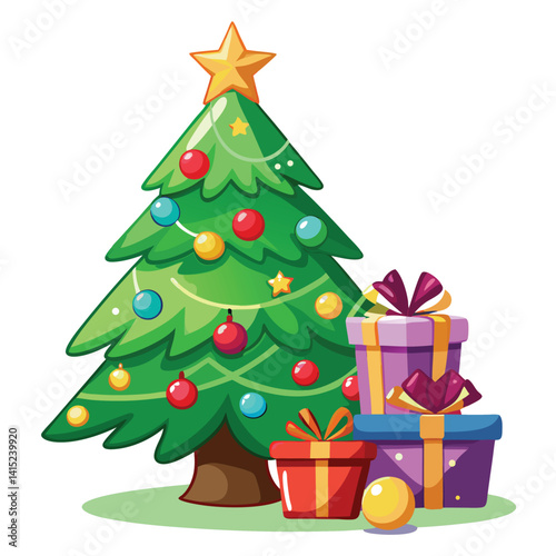 Christmas tree and gift boxes flat design isolated on white background