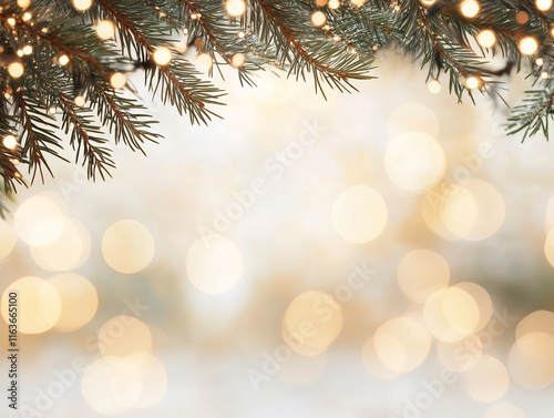 Christmas tree background with gold blurred light