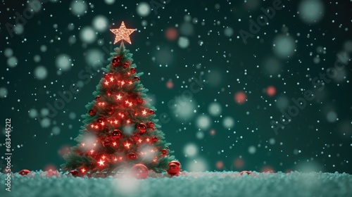 Christmas tree decorated with lights on a dark green background. Merry Christmas and Holidays greeting card, frame, banner. New Year.