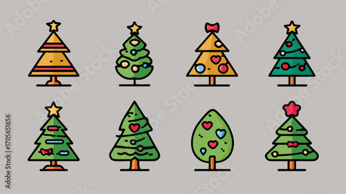 Christmas Tree Icon Set on Gray Background - Festive Holiday Decoration Illustrations