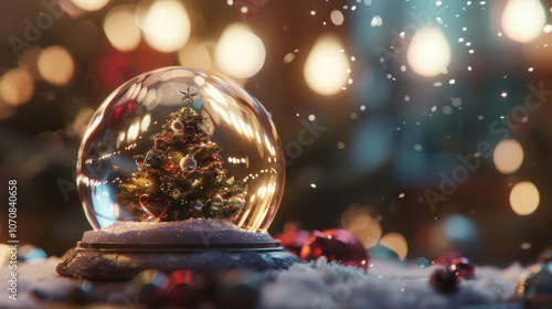 christmas tree in snow globe
