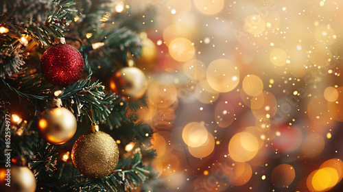 Christmas Tree Ornaments with Bokeh Lights.