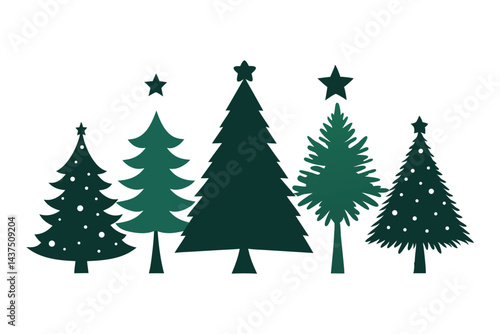 Christmas Tree Silhouette Icons On White Background