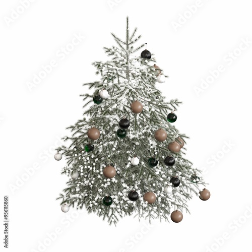 Christmas tree with decorations, isolated on white background, 3D illustration, cg render