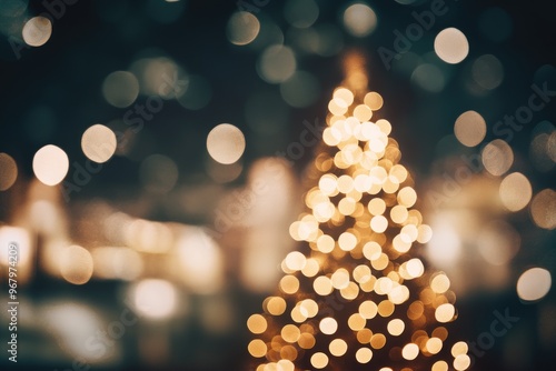 Christmas Tree with Lights Against Dark Night Sky, Vintage Filter, Winter Holiday Concept