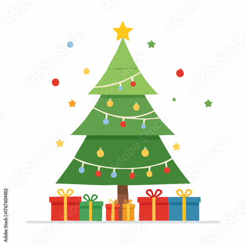 Christmas tree with presents and ornaments