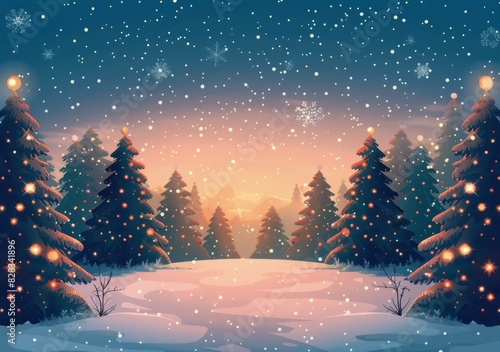 Christmas trees in a snowy forest