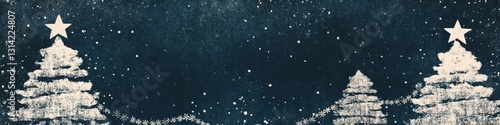 Christmas trees with garland in retro stipple effect. Trendy illustration for collage with vintage photocopy texture. Grainy, noisy, gritty design for grunge punk banner, poster, template, soci