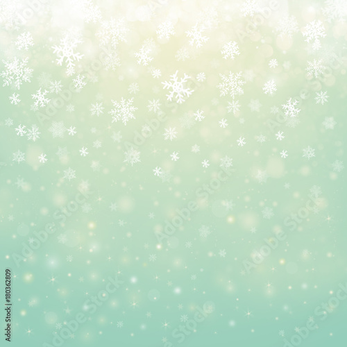 Christmas winter abstract background with snowflakes, bokeh lights and place for text. Christmas New Year's wallpaper