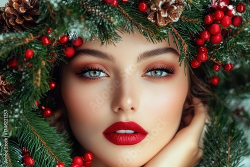 Christmas Woman. Christmas Tree Holiday Hairstyle and Makeup 5 40