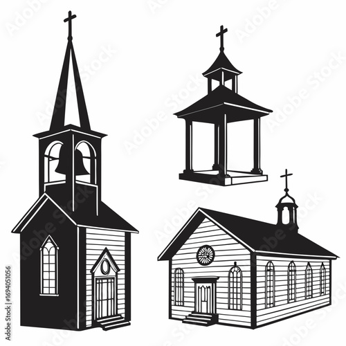 Church buildings with crosses and bells christian architecture