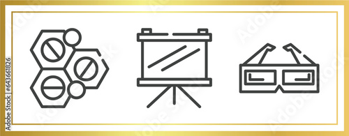 cinema outline icons set. linear icons sheet included solid, fabric for movies, 3d paper glasses vector.