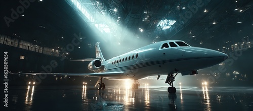 Cinematic Photoshoot of a Luxury Business Jet in Hangar with Dramatic Volumetric Lighting