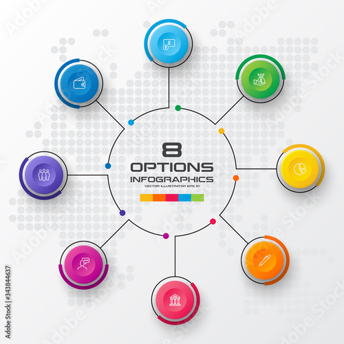 Circle chart infographic template with 8 options,Vector illustration.