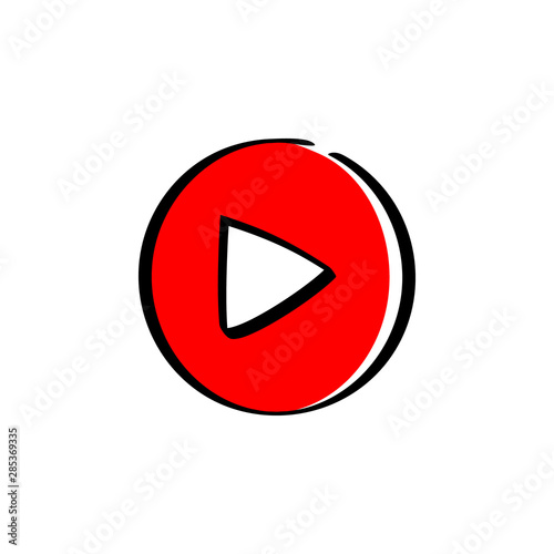 Circle Play Button icon hand drawn cartoon style