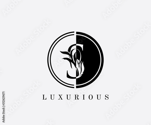 Circle S Letter Floral Logo. Luxury S Swirl Circle Logo Icon