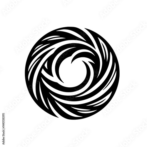 Circular Abstract Black and White Design, Geometric Pattern on White Background