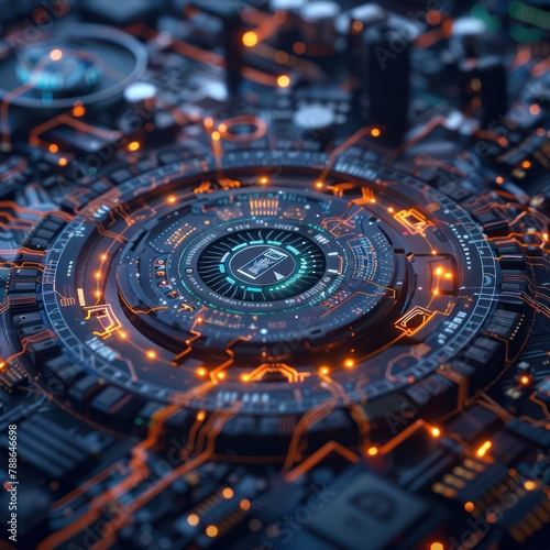 Circular economy concept with a digital interface tracking product lifecycle from creation to recycling, close-up on a circular flow chart